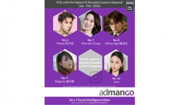 根據admanGo數據顯示,以2026年第一季品牌內容廣告總銷售額計算,十大IG